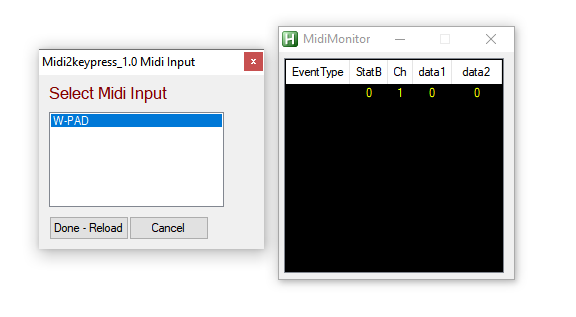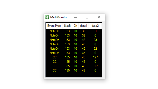 Po restarcie zobaczymy okno “MidiMonitor” - teraz można kliknąć na pady i zobaczyć, czy są wykrywane: